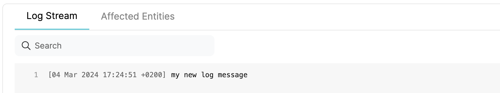 • logs - Log entries that will be displayed in the action run's page in Port.
