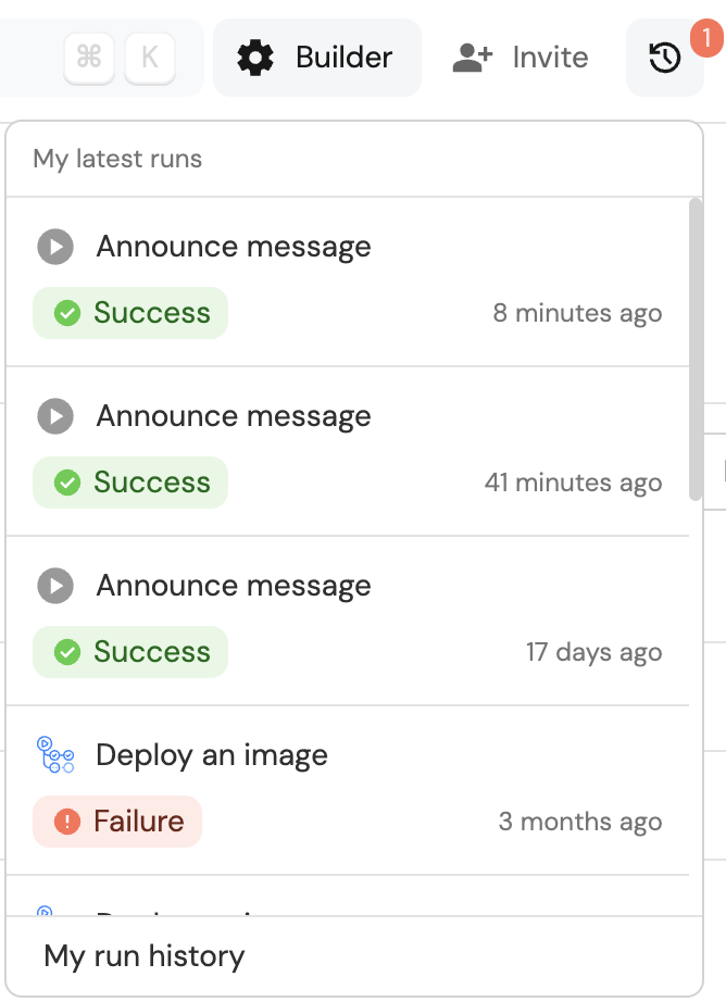 You can also click on the My run history button to see a table with all of the user's previous action runs.