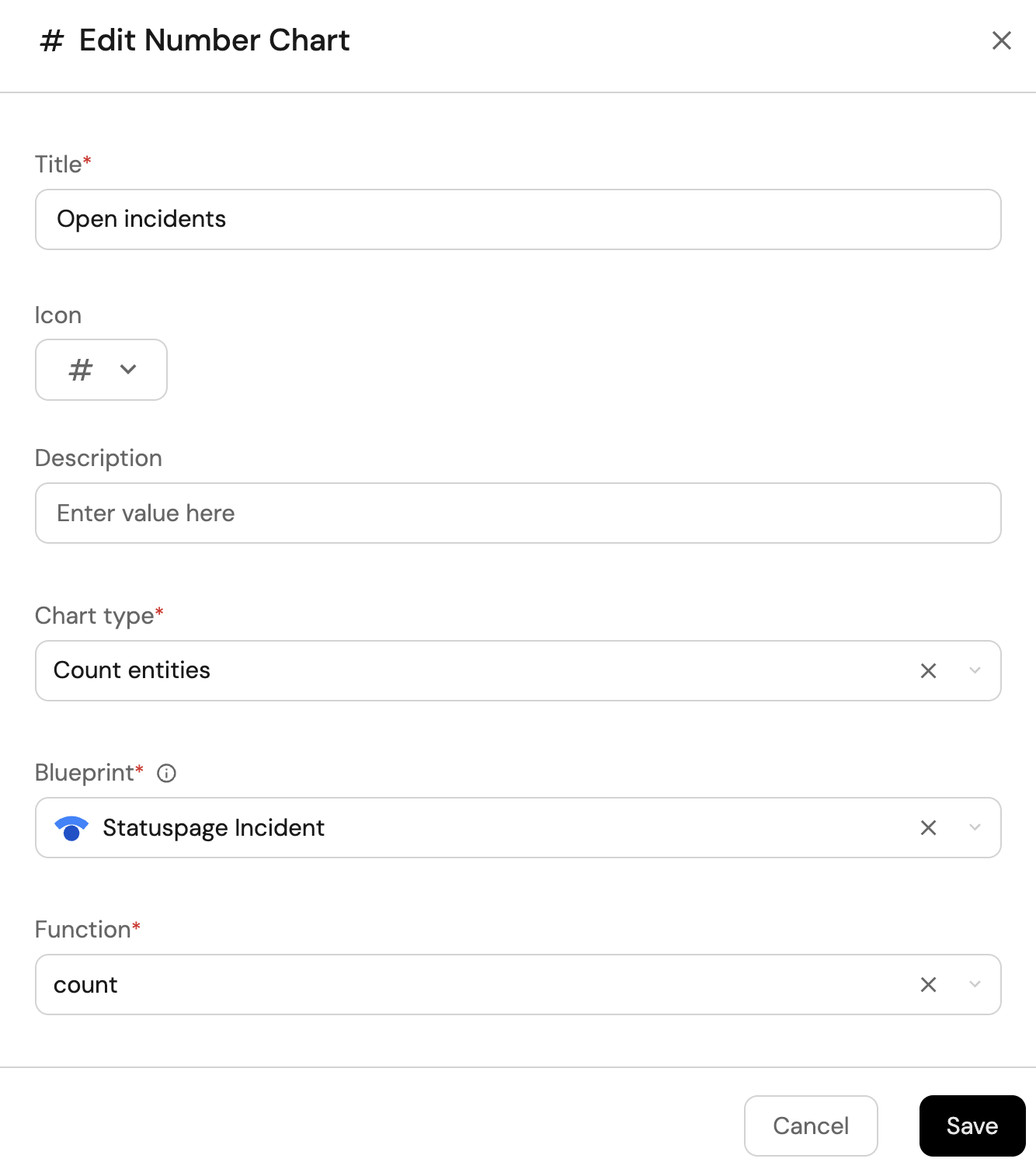 Count entitiesChart type and choose Statuspage Incident as the Blueprint. -