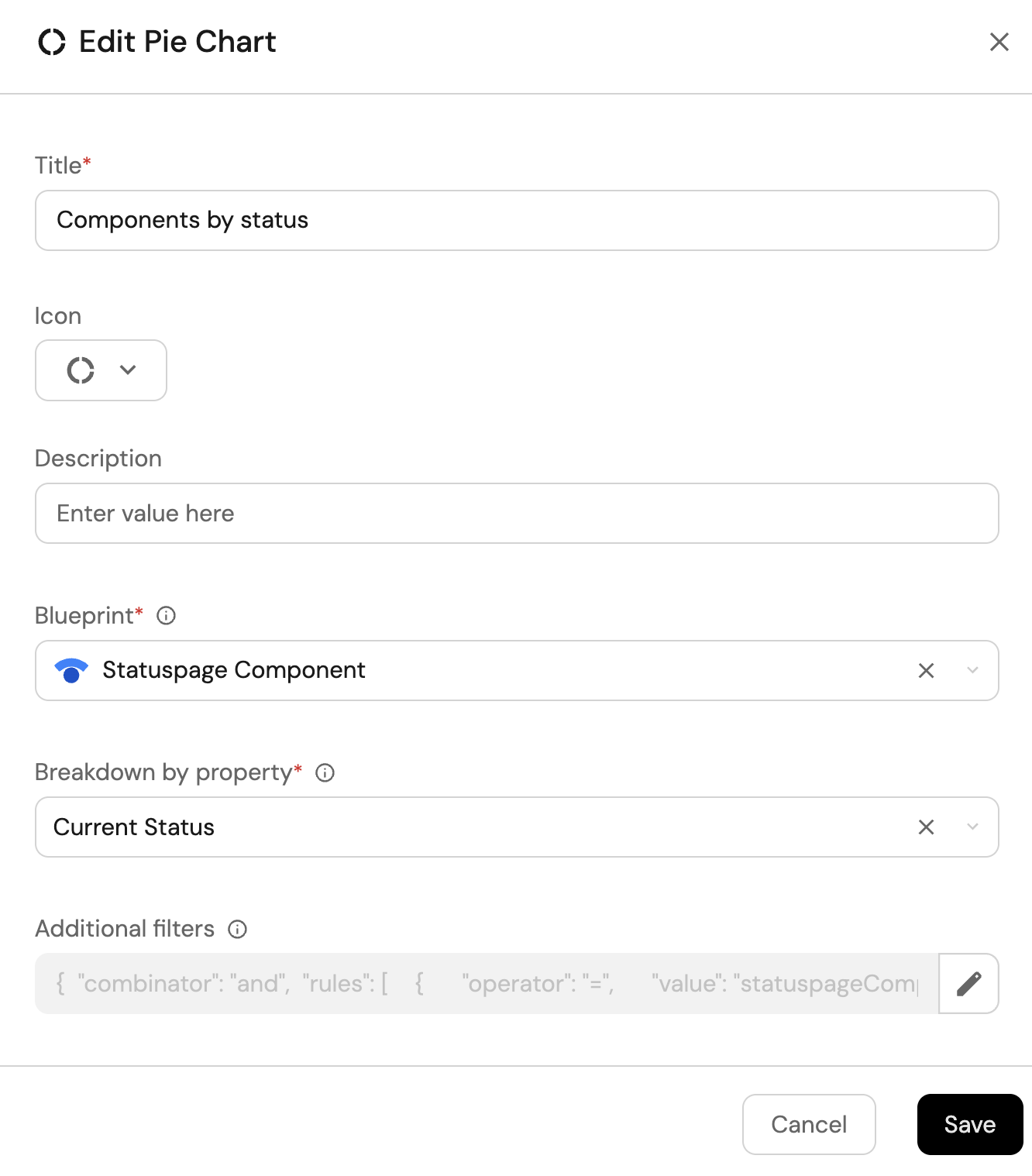 Count entitiesChart type and choose Statuspage Component as the Blueprint. -